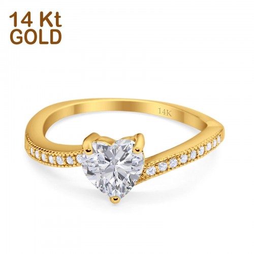 14K White Gold Heart Claddagh Art Deco Wedding Ring Simulated Cubic Zirconia Size-7 14K Gold