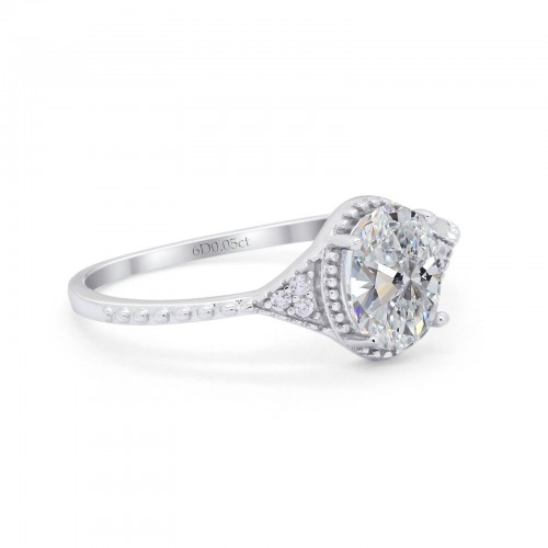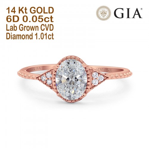 14K White Gold Oval Art Deco 8mmx6mm D VS2 GIA Certified 1.01ct Lab Grown CVD Diamond Engagement Wedding Ring Size 6.5