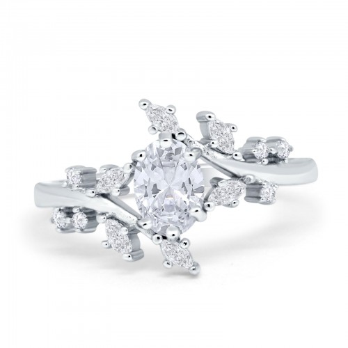 14K White Gold Oval Bridal Simulated CZ Wedding Engagement Ring Size 7 14K Gold