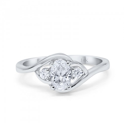 14K White Gold Oval Bridal Wedding Engagement Ring Simulated CZ Size-7 14K Gold