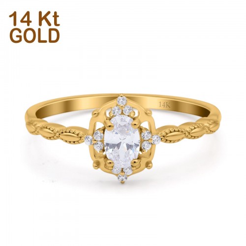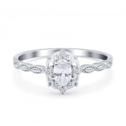 14K White Gold Oval Cut Petite Dainty Marquise Vintage Art Deco Floral Wedding Engagement Ring Simulated Cubic Zirconia Size-7