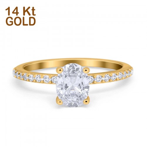 14K White Gold Oval Solitaire Accent Engagement Rings Simulated CZ Size 7
