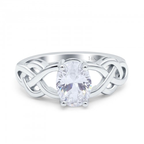 14K White Gold Oval Solitaire Celtic Wedding Engagement Ring Vintage Simulated Cubic Zirconia Size-7