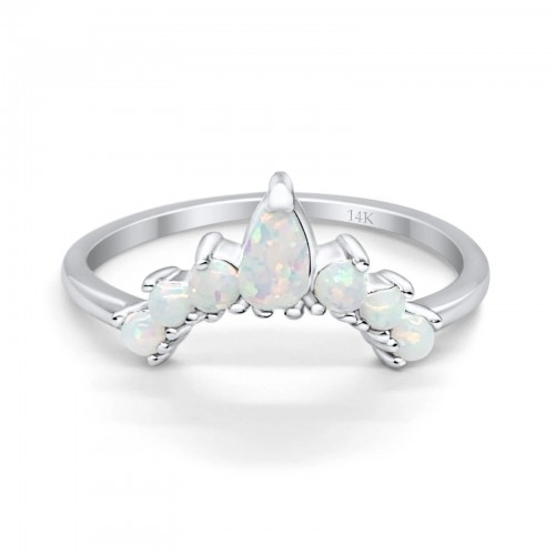 14K White Gold Pear Curved Band Thumb Ring Half Eternity Simulated CZ Lab Created White Opal Wedding Engagement Size-7