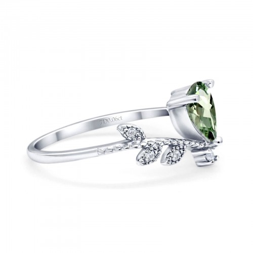 14K White Gold Pear Natural Green Amethyst 0.77ct G SI Diamond Engagement Ring Size 6.5
