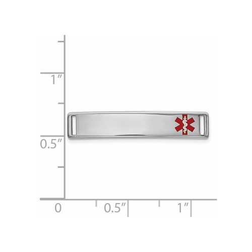 14k White Gold Polished 24x Off-Center Red Epoxy Enameled Medical ID # 816 5mm