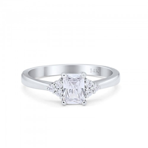 14K White Gold Radiant Cut Engagement Ring Simulated CZ Size-7 14K Gold