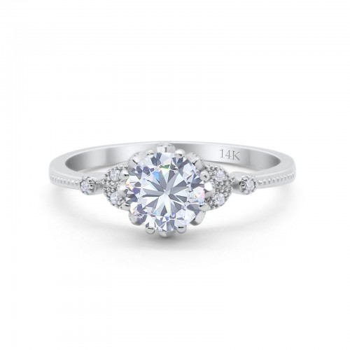 14K White Gold Round Art Deco Fashion Bridal Simulated CZ Wedding Engagement Ring Size 7 14K Gold
