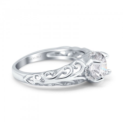 14K White Gold Round Art Deco Filigree GIA Certified 6.5mm D VS1 1.01ct Lab Grown CVD Diamond Engagement Wedding Ring Size 6.5