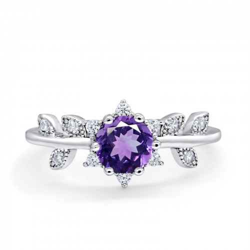 14K White Gold Round Natural Amethyst G SI 1.02ct Diamond Engagement Ring Size 6.5