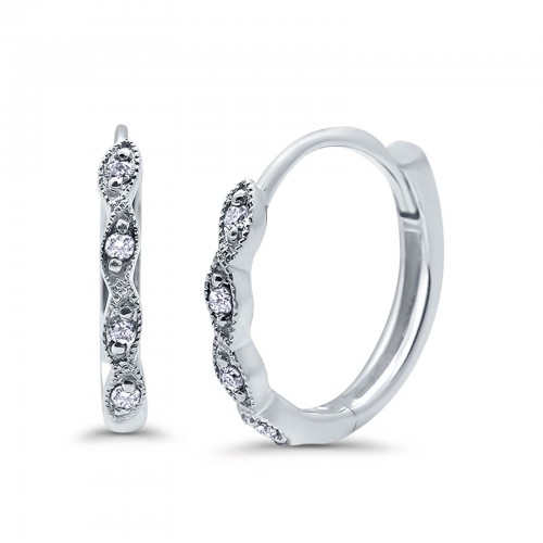 14K White Gold Round Simulated Cubic Zirconia Hoop Huggie Earrings