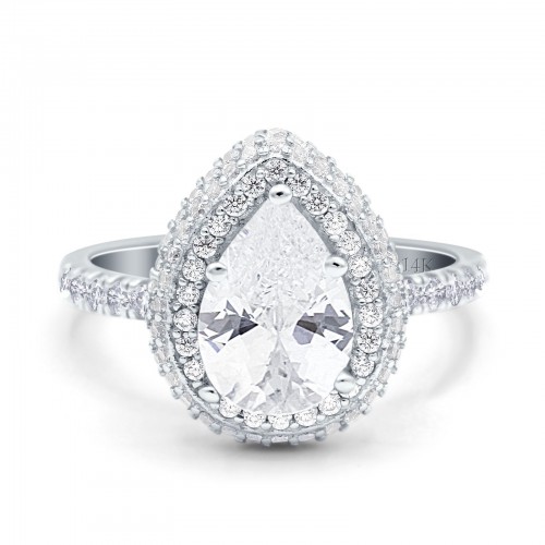 14K White Gold Teardrop Pear Art Deco Vintage Engagement Ring Simulated Cubic Zirconia Size-7