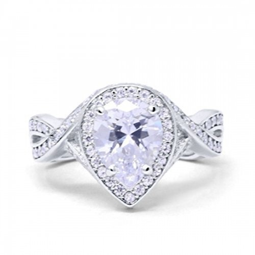 14K White Gold Teardrop Pear Bridal Simulated CZ Wedding Engagement Ring Size-7 14K Gold