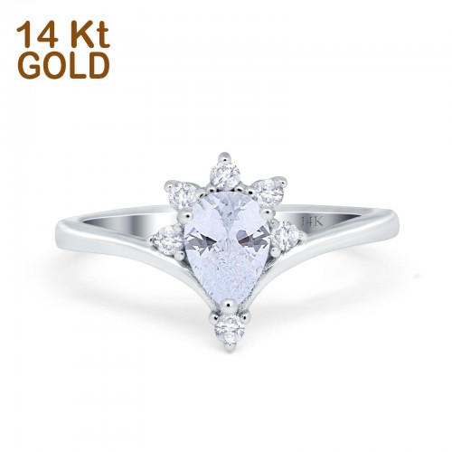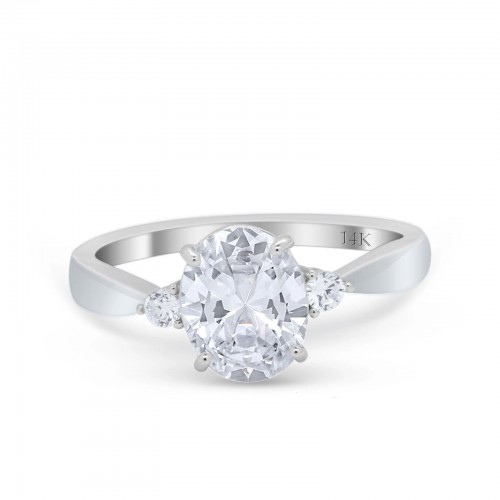 14K White Gold Three Stone Oval Bridal Simulated CZ Wedding Engagement Ring Size 7 14K Gold
