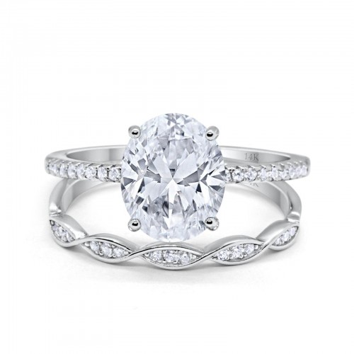 14K White Gold Two Piece Oval Wedding Ring Bridal Set Band Engagement Simulated CZ Size-7