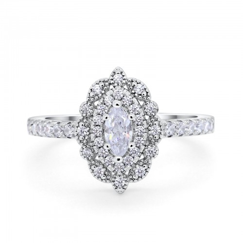 14K White Gold Vintage Style Art Deco Marquise Wedding Engagement Bridal Ring Round Simulated Cubic Zirconia Size-7