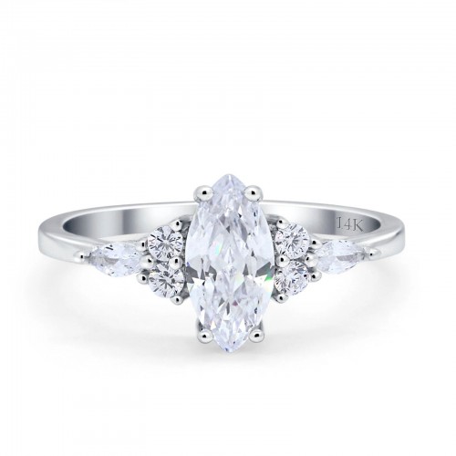 14K White Gold Vintage Style Marquise Bridal Simulated CZ Wedding Engagement Ring Size 7 14K Gold