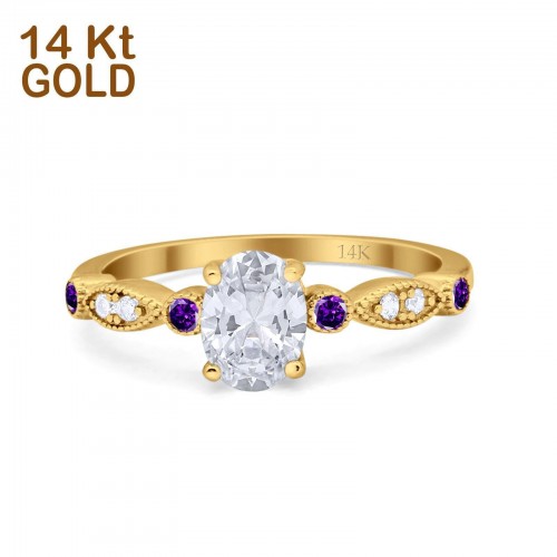 14K White Gold Vintage Style Oval Bridal Green Emerald Simulated CZ Wedding Engagement Ring Size 7 14K Gold