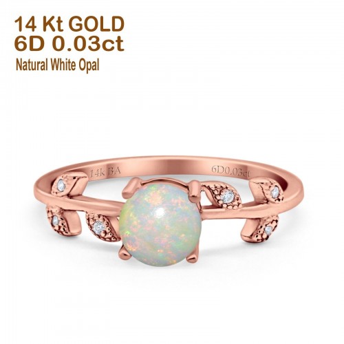 14K Yellow Gold 0.03ct Round Natural White Opal G SI Diamond Engagement Ring Size 6.5