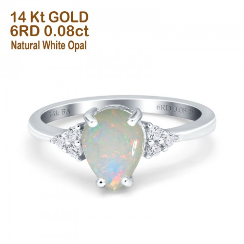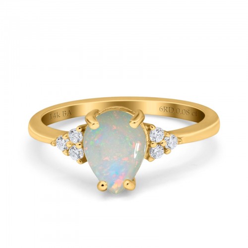 14K Yellow Gold 0.08ct Teardrop Pear 8mmx6mm G SI Natural White Opal Diamond Engagement Wedding Ring Size 6.5