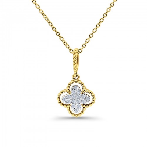 14K Yellow Gold 0.09ct Round Shape Diamond Antique Flower Pendant Chain Necklace 18″ Long