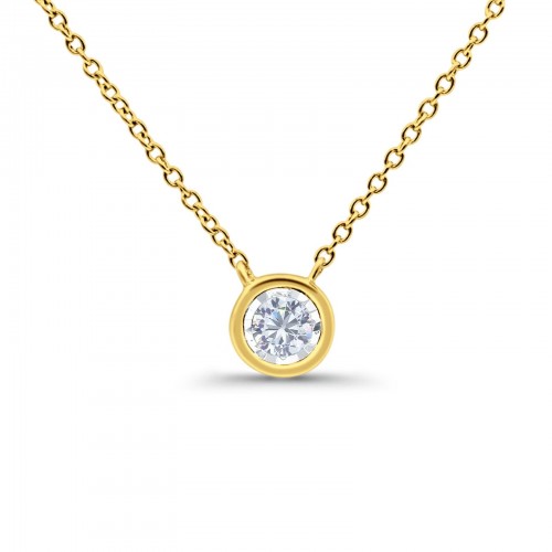 14K Yellow Gold 0.10ct Round Shape Diamond Solitaire Bezel Pendant Chain Necklace 18″ Long