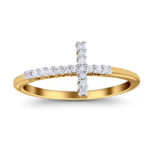 14K Yellow Gold 0.12ct Round 9mm G SI Diamond Sideways Cross Eternity Band Engagement Wedding Ring Size 6.5