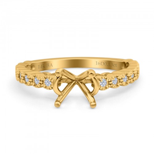 14K Yellow Gold 0.13ct Round 6.5mm G SI Semi Mount Diamond Engagement Wedding Ring Size 6.5