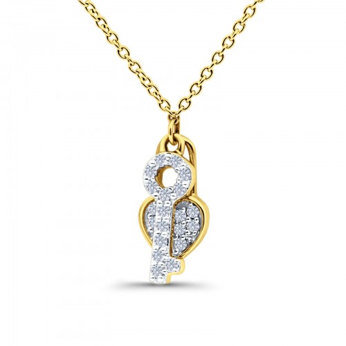 14K Yellow Gold 0.13ct Round Shape Diamond Key To My Heart Pendant Chain Necklace 18″ Long