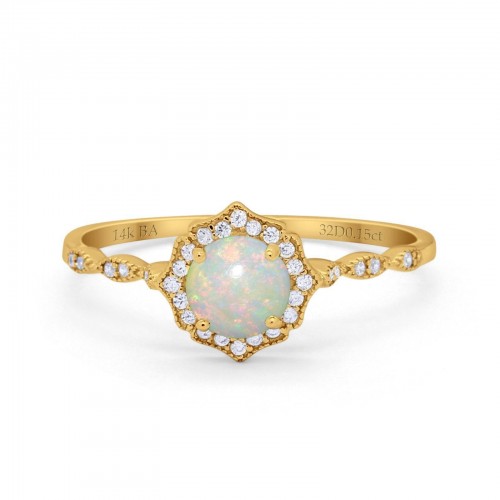 14K Yellow Gold 0.15ct Round Petite Dainty 6mm G SI Natural White Opal Diamond Engagement Wedding Ring Size 6.5