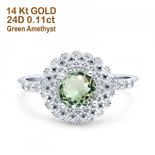 14K Yellow Gold 0.21ct Art Deco Round 7mm G SI Natural White Opal Diamond Engagement Wedding Ring Size 6.5