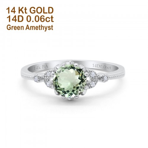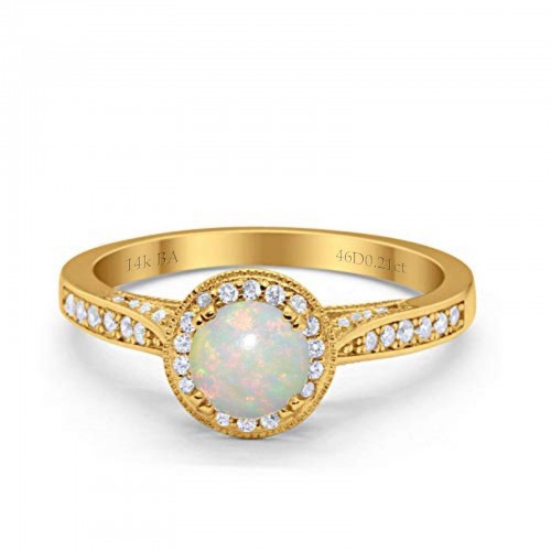 14K Yellow Gold 0.21ct Round Halo 6.5mm G SI Natural White Opal Diamond Engagement Wedding Ring Size 6.5