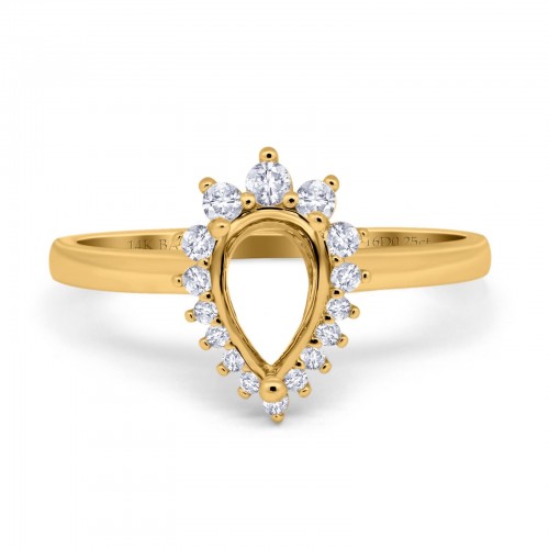 14K Yellow Gold 0.25ct Teardrop Pear 9mmx7mm G SI Semi Mount Diamond Engagement Wedding Ring Size 6.5