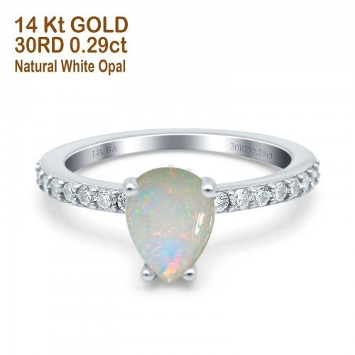 14K Yellow Gold 0.29ct Teardrop Pear Accent 8mmx6mm G SI Natural White Opal Diamond Engagement Wedding Ring Size 6.5