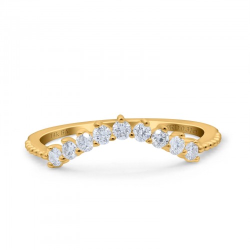 14K Yellow Gold 0.31ct Round Midi Curved Art Deco 4.5mm G SI Half Eternity Diamond Band Engagement Wedding Ring Size 6.5