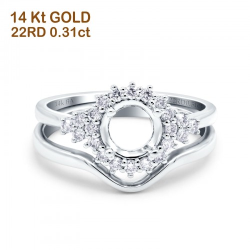 14K Yellow Gold 0.31ct Round Two Piece Halo 7mm G SI Semi Mount Diamond Engagement Wedding Ring Size 6.5