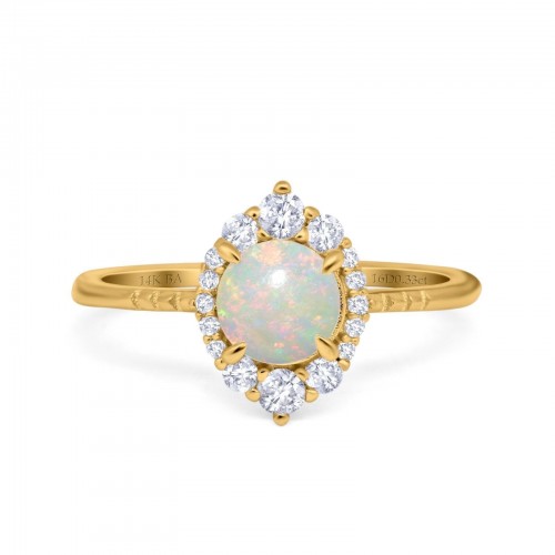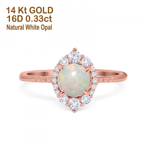 14K Yellow Gold 0.33ct Halo Vintage Round 7mm G SI Natural White Opal Diamond Engagement Wedding Ring Size 6.5