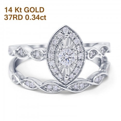 14K Yellow Gold 0.34ct Marquise Shaped 12mm G SI Diamond Engagement Wedding Bridal Set Ring Size 6.5