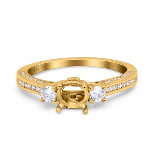 14K Yellow Gold 0.53ct Round Three Stone Vintage 6mm G SI Semi Mount Diamond Engagement Wedding Ring Size 6.5