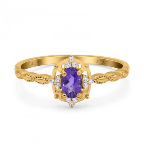 14K Yellow Gold 0.5ct Oval Vintage Floral 6mmx4mm G SI Natural Amethyst Diamond Engagement Wedding Ring Size 6.5
