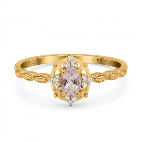 14K Yellow Gold 0.5ct Oval Vintage Floral 6mmx4mm G SI Natural Morganite Diamond Engagement Wedding Ring Size 6.5