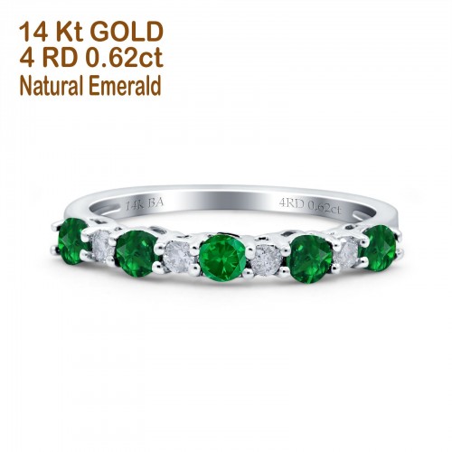 14K Yellow Gold 0.62ct Round 2.5mm Band G SI Half Eternity Emerald & Diamond Engagement Wedding Ring Size 6.5