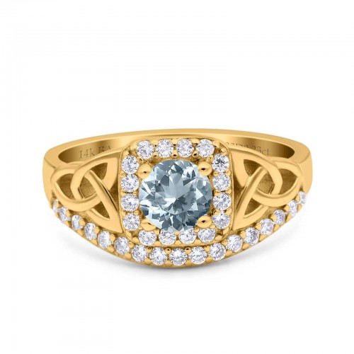 14K Yellow Gold 0.69ct Round Art Deco 5mm G SI Natural Aquamarine Diamond Engagement Wedding Ring Size 6.5
