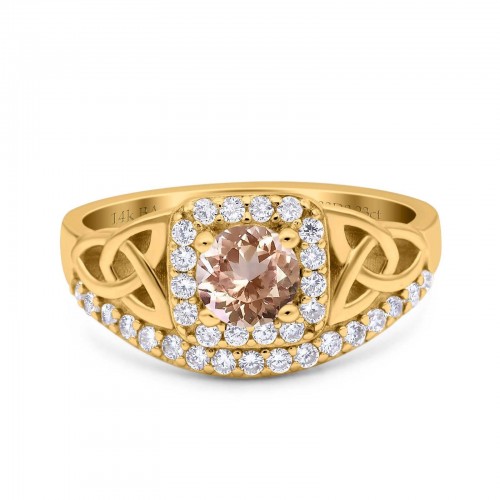 14K Yellow Gold 0.69ct Round Art Deco 5mm G SI Natural Morganite Diamond Engagement Wedding Ring Size 6.5