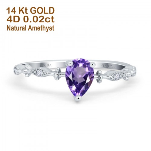 14K Yellow Gold 0.73ct Teardrop Pear 7mmx5mm G SI Natural Green Amethyst Diamond Engagement Wedding Ring Size 6.5