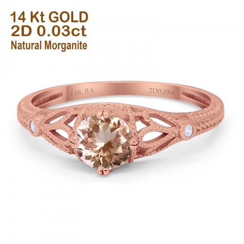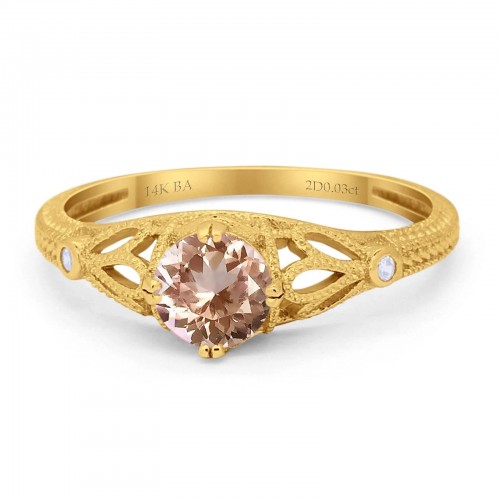 14K Yellow Gold 0.87ct Vintage Design Solitaire Round 6mm G SI Natural Morganite Diamond Engagement Wedding Ring Size 6.5