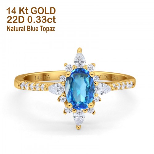 14K Yellow Gold 0.99ct Round Petite Dainty 6mm G SI London Blue Topaz Diamond Engagement Wedding Ring Size 6.5