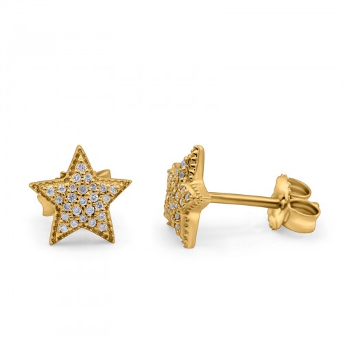 14K Yellow Gold .09ct Trendy Micro Pave Star Diamond Stud Earrings