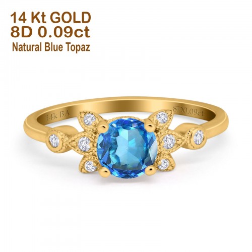 14K Yellow Gold 1.01ct Round 6mm G SI Nano Blue Sapphire Diamond Engagement Wedding Ring Size 6.5
