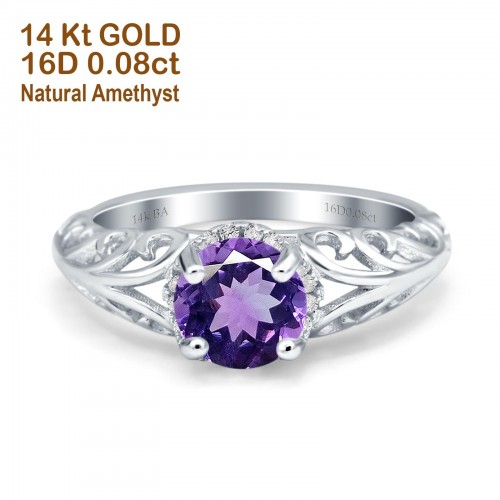 14K Yellow Gold 1.11ct Round Art Deco Filigree 6.5mm G SI Nano Emerald Diamond Engagement Wedding Ring Size 6.5